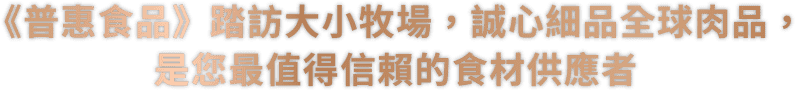 普惠食品企業(yè)股份有限公司於1985年成立至今,致力於提供臺(tái)灣食品業(yè)者來自於全球的優(yōu)質(zhì)牛肉、豬肉、雞肉、火雞肉品與海鮮,肉品批發(fā)與肉品加工分切服務(wù),最多元最專業(yè)的肉品進(jìn)口商與批發(fā)商。